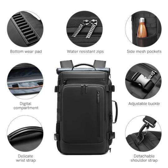 | Features | Anti-theft pockets, USB port (optional), padded laptop slot, ergonomic straps, water-resistant build |