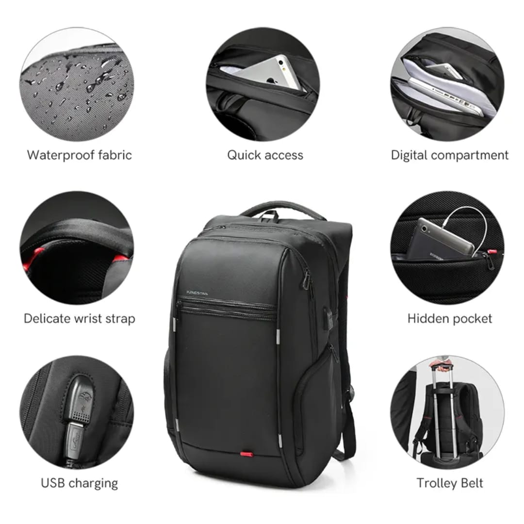 The Kingsons KS3140W is a sleek, everyday laptop backpack built for security, convenience, and durability. With a water-resistant exterior, anti-theft design, and built-in USB charging port, it’s ideal for students, professionals, and commuters.